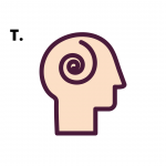 De T staat voor tastzin. Als je met je innerlijk oog je lijf scant, kun je ook intunen op het gevoel van je lijf. Met je tastzin kun je voelen wat je lijf doet. Je kunt voelen hoe de beweging van de arm voelt.